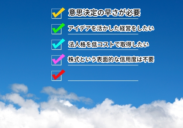 合同会社においては、このような複雑な手続きを省略して短時間での意思決定を可能とするスピード感があり、自由な経営が可能であるといえます。